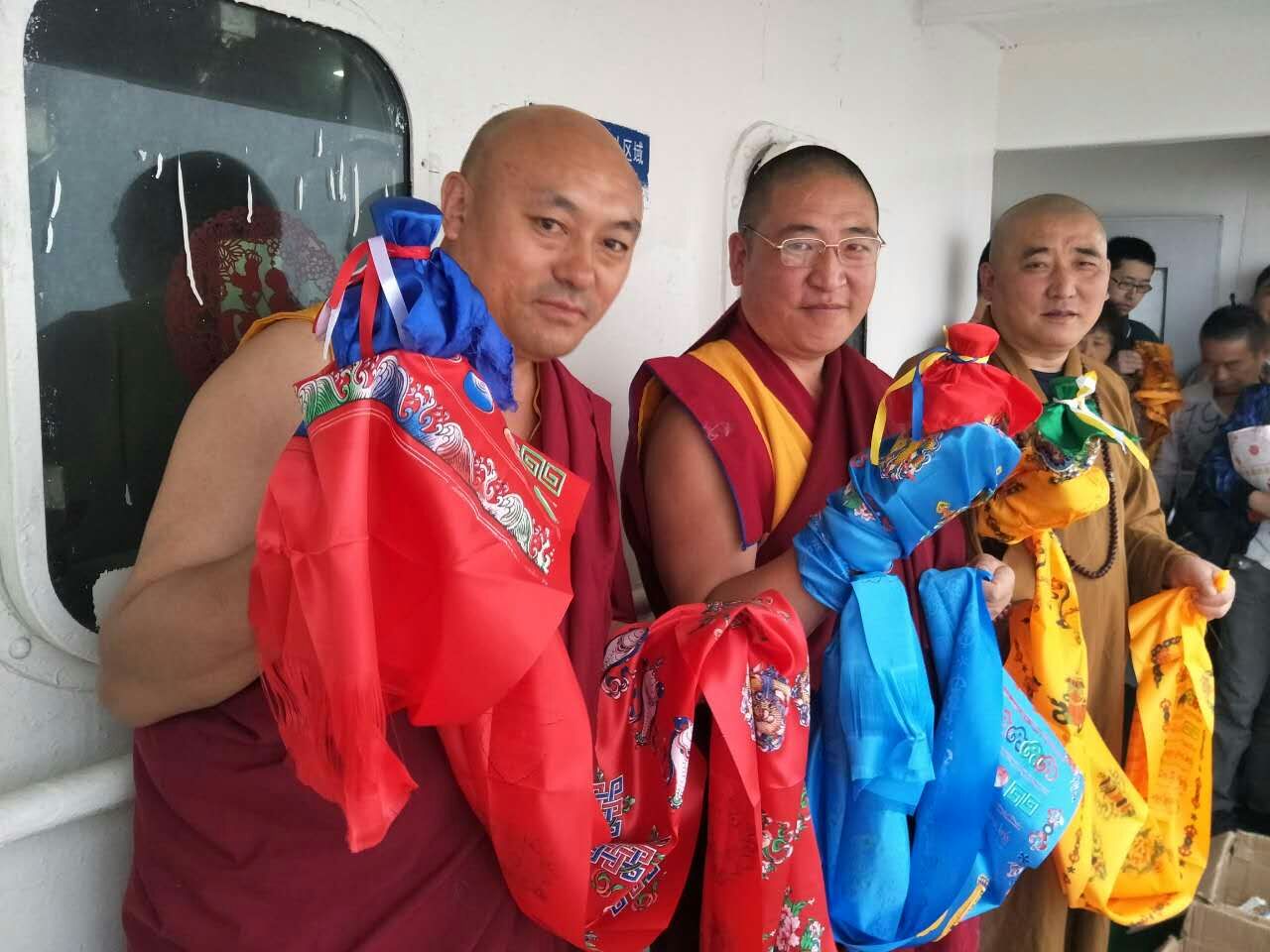 三位师父在东海投放龙王宝瓶,愿风调雨顺、国泰民安,身体安康
