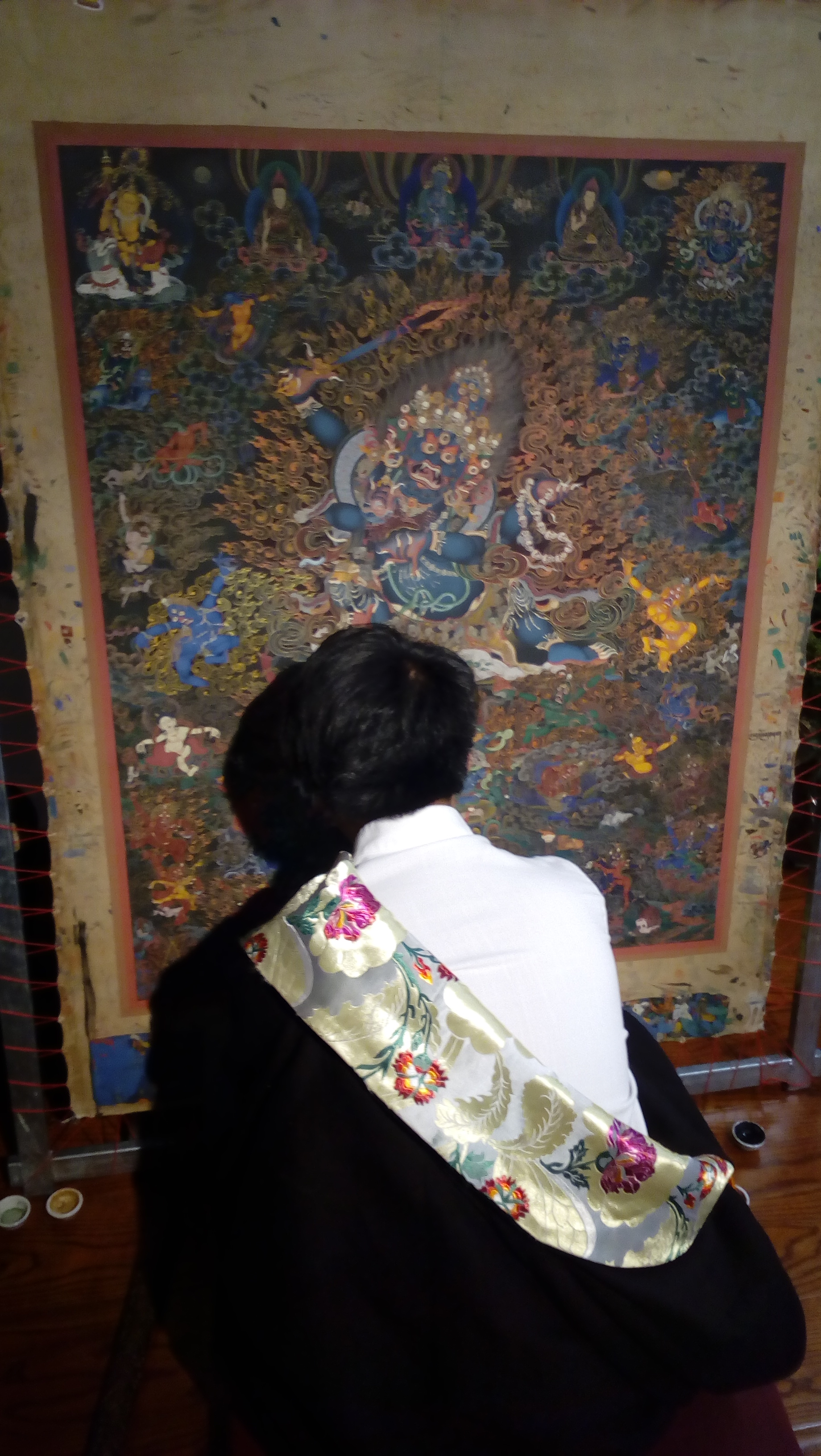 2018觉囊唐卡展 2018觉囊唐卡展于2月3日下午14:30在上海南京东路422号上海朵云轩开幕 作为藏传佛教一个独特的派系--觉囊派,不仅在天文、历法、音乐、唐卡等方面有着丰厚的文化底蕴,在修法上以时轮金刚为特色,在法理方面以他空见为特色。觉囊派是藏传佛教的一个重要流派,觉囊派所持的法是释迦牟尼佛亲自传授的一切密法,因而觉囊派也是释迦牟尼佛所讲一切密法精华重要的一支。 今日的觉囊派主要在四川阿坝的壤塘地区的藏哇寺。 法主为健阳乐住活佛,由于他在弘扬觉囊的非物质文化方面的有极大贡献,所以现在已是一位有名的中国文化名人,在腾讯网、著名高校都有他的身影。 因15年前曾为藏哇寺办过一个网站,曾和健阳上师有过这么一个缘分,他亲切和蔼,特别眼睛清澈见底,被誉为地藏菩萨的化身……。 15年没见了,今天相遇,上师居然还记得我,真是莫大的荣幸! 15年前在陈晓东(原上海市委机要秘书)老师家的合影 15年后我还是穿着那件衣服 藏地小伙们的演出 复旦大学钱文忠教授是这次唐卡展主要策划和落实者 各界文化名人 唐卡 唐卡(时轮金刚) 正在制作唐卡的小伙