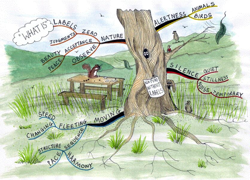 坐在大自然中,你开始意识到你的标签和判断对你的看法有多么重要。观察美丽与宁静,在任何产生的噪音下,沉默变得更加明显。和谐展现,变化发生,有时快,有时慢,因为风景一刻一页地展开,一块一块地展开。动物和鸟类不需要身份,它们只是“它们是什么”。他们把他们的“存在”作为一个新的时刻,现在,警觉和他们的环境一起生存。时间流逝,光明消逝,黑暗降临,光明回归,大自然观察变化而不带标签;大多数情况下和平与寂静。你也可以坐在大自然中,不带标签地平和地观察。