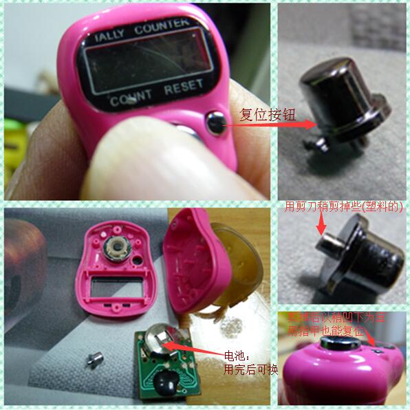 这类计数器的缺陷就是手指很容易碰到复位按钮,使得计数归零,计数错乱。所以以下图进行小小改进。