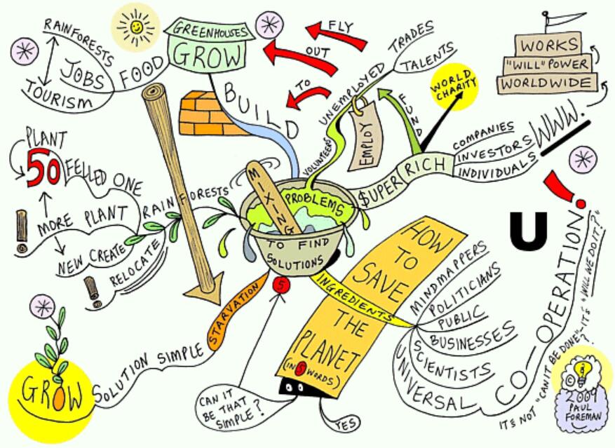 我仍然坚信,思维导图是解决许多世界问题的关键。它开辟了寻找解决方案的新途径,并强调大多数解决方案都是简单的。这是一张几乎无法触及表面的思维图,但原理就是这种简单性。找到简单的答案。这是一个如何去做的问题,思维导图也可以揭示这个问题。以饥饿为例,显然答案是食物。在这个技术时代,生长的食物会有这么困难吗?我们应该能在任何地方种植食物!即使它需要建造温室和水库。只有当你专注于问题而不是解决方案时,进展才会受阻。