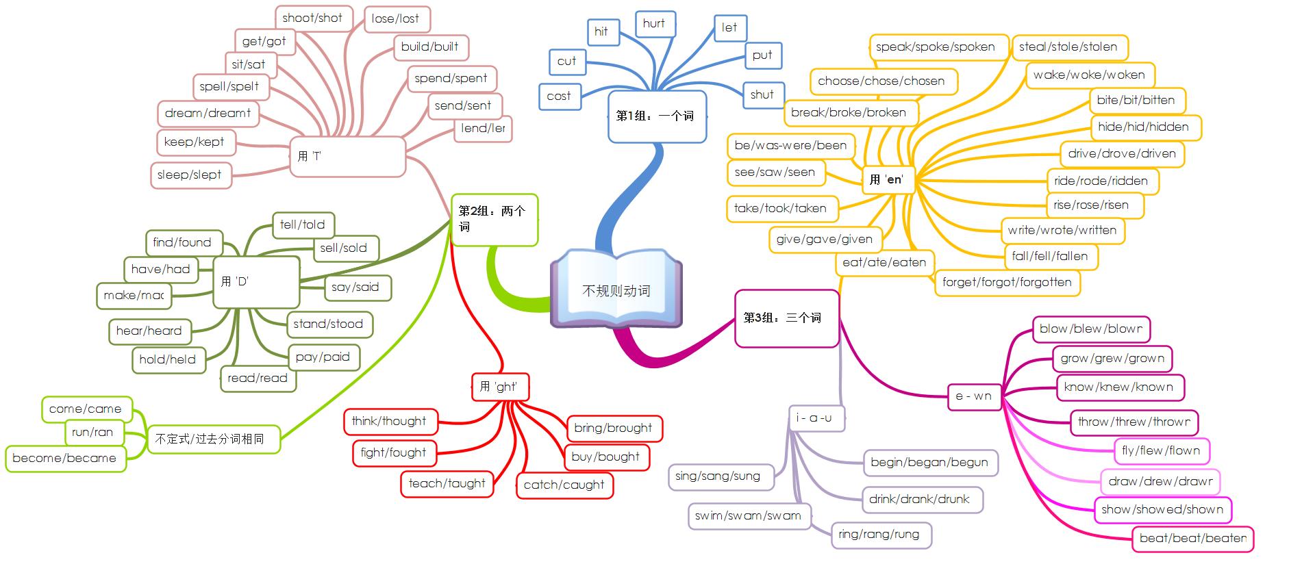 ==英语不规则动词复习==我注意到这张思维导图是所有思维导图的最高等级,也是教育中最受关注的。谢谢每一个竖起大拇指的人。所有的学生都曾试图从字面上学习英语的不规则动词的字母顺序。我制作了这个思维导图,是帮助他们了解有多少个子组具有相似性,从而使任务变得更容易一些。不是所有的动词都在这里,我有选择性的。如果你下载地图,你可以根据你的需要添加或删除动词。