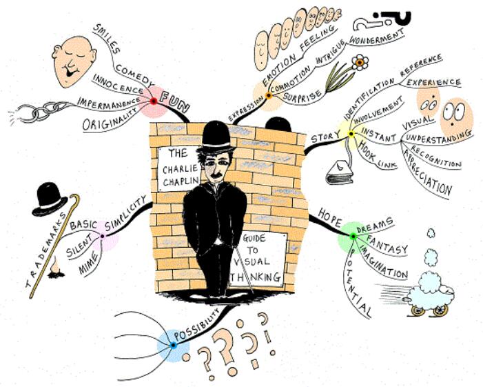 哑剧大师查理卓别林完善了视觉娱乐艺术。这位英国电影导演兼演员查尔斯·斯宾塞·查普林爵士(1889年至1977年)因着名的淘金热(1925年)和现代时报(1936年)等电影而出演的手杖,圆顶礼帽和小胡子而闻名。 查理卓别林的创造天才与视觉思维领域有相似之处。查理卓别林视觉思维指南思维导览突出了查理卓别林表达他着名的流浪汉特征的六个方面。 1、简单 流浪汉通过简单的元素立即产生视觉印象,易于识别。使用三个主要商标;礼帽,手杖和小胡子加上沉默的哑剧,这个角色立刻就能辨认出来。我们可以立即与他联系。 2、开玩笑 格式基本,原创;流浪汉将我们的情绪从笑声,微笑,恐惧和危险中汲取。总的来说,这个角色描绘的是纯真和有趣。 3、表达 流浪汉的性格通过情感和感受来表达;阴谋和惊喜的混合让我们感兴趣,并希望了解结果。 4、故事 流浪汉带我们穿过迷你钩;我们可以通过个人经验或认可和欣赏来识别和关联小型传奇。吸引并参与我们跟随起伏,骚动和最终结果,无论是时刻还是长期。 5、希望 查理卓别林扮演我们的梦想,幻想,想象力和潜力。他提出问题,提供答案,有时让我们在未知之中徘徊。 6、可能性 流浪汉也代表着无限的可能性;开放式潜力 - “下一步是什么?”的阴谋 在视觉思维领域并立即产生影响的是思维导图中确定的六个领域,这些领域是提出想法的问题: 简单 - 如何简化以创建即时影响? 乐趣 - 我怎样才能使我的工作变得更加愉快? 表达 - 我如何在情感上联系? 故事 - 如何创建短期和长期的钩子? 希望 - 我怎样才能鼓励希望和想象力呢? 可能性 - 我怎样才能代表无限的可能性和潜力? 查理卓别林是阴谋,视觉冲击和即时理解的大师。 花一点时间搜索他的一些视频片段,你会看到他每隔几秒就能创造一次视觉输入的雪崩。如果您暂停视频,即使仅通过他的表情,肢体语言和一些道具,您也会看到信息如何形成故事。我们说一张图片胜过千言万语。在查理卓别林的案例中,“外观”胜过千言万语 在你的视觉领域内,你如何将Charlie Chaplin的一些品质融入即时吸引力,即时识别中;即时了解?