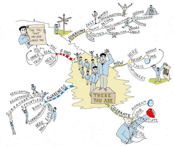 你在那里 试图“发现”自己就像跑马拉松而不知道路线,然后意识到“你”在这里,现在,静止(或移动)在这一刻。 向四面八方寻找你自己;试着去发现你远离的是谁。 你就是你所在的地方——无论你在哪里,那就是你。 静坐20分钟,意识到自己身处何处,完全意识到自己的身体和环境——那就是你。 你在这儿。 如果你站起来,搬到别的地方去,再检查一下整体意识身体和环境——再次——你就在那里。 不管你身边或身上有什么,这都是外在的——无论你走到哪里,内心总是在那里。内在是“真正的你”的地方——无论你走到哪里,你都会带着“你”。真正的你,内在的你——认识、接受、理解、探索、欣赏、爱、庆祝、享受——毫不费力地、平静地屈服于当下。你,此刻,没有徽章或标签的“你”永远不会离开你。 如果你试图找到自己,你会发现你没有离开;你没有去过任何地方,而且从来没有。你一直在那里,无论那里是过去还是将来。 你在这儿。