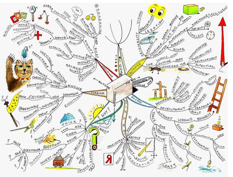 跳出思维框框的思维导图幻想-创意,拓展允许——鼓励、发展错过?什么,过于复杂为什么?思考,思考?联合-已知的,未知的挑战-规则,自我添加