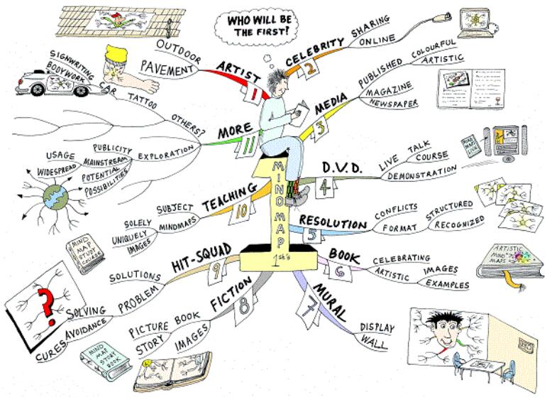 在2008年的一次竞争和挑战的推动下,我创建了一个思维导图,探索“人的数量指数增长”这一主题。比赛强调了许多关于使用思维导图的好主意。 现在,在2011年,我决定考虑思维导图第一;潜在的新途径,以帮助进一步普及的思维导图。我已经确定了十个想法,也许比其他想法更可行或更实用。 我想到的是: 谁将是第一个创建户外思维地图的人行道艺术家? 谁将是第一个在网上分享他们创建的思维导图的名人? 谁将是第一个在杂志或媒体上发表彩色艺术思维图的人? 谁将是第一个制作思维导图DVD的人? 谁将是第一个为冲突解决创建结构化思维导图格式的人? 谁将第一个出版一本庆祝艺术思维图的书? 谁将是第一个创造永久多彩的心灵地图壁画? 谁将是第一个创建思维导图故事的人——一本只有图像的书? 谁将是第一个创建思维导图解决方案的人,寻找专门解决问题的突击队? 思维导图第一——你可能是第一个探索上述任何途径的人吗? 你还能想到其他什么方法来传播思维导图知识?