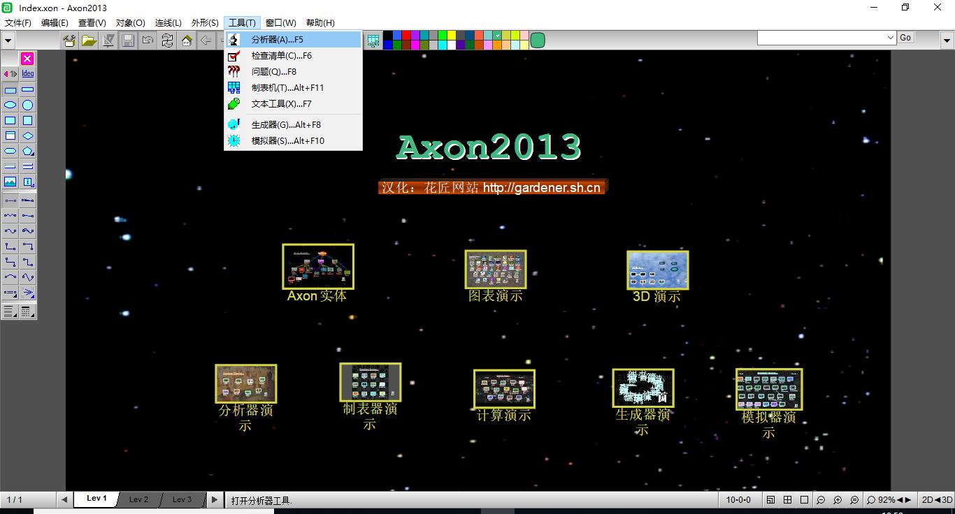 一种基于Java的认知架构,基于以下设计原则: GOFAI(良好的老式AI),使用基于规则和OO(面向对象)的方法。 受生物启发,其中节点和链接代表神经元和轴突。 建立全局的功能模型,这是必要的第一步。 “一个可以容纳一切的地方,可以代替一切。” 使用统一的方法和基本的Javascript。 利用视觉的力量。 汉化及使用说明: 本绿色汉化版是基于免费版基础上汉化而成,没有时间到期限制,但对文件大小有限制(少于20个实体),且不能导入/导出,所以制作后请把您的作品进行截图。 系统要求: 适用于Windows 7/Windows10、和XP。 Axon2013解包在任意盘、任意路径下,双击“Axon2013”即可运行。 绿色汉化版下载地址:点这里!(大小:12.79MB) 汉化情况: 1、主界面基本完成,除首页案例进入后的个别演示 2、本程序基于单字节代码,所以个别情况或许有乱码(如演示页面) 3、由于精力有限,个别地方的汉化有汉化过度的地方(有出错现象),但不影响基本的操作,请谅解,等以后有空再修改。 4、因版权原因本绿色版的汉化没做破解,同时为保护本人的汉化资源对主程序加了壳,可能个别杀毒软件会报毒,但请放心使用,若有疑虑则放弃使用哦。 软件介绍: AXON2013概念处理器(概念地图工具),是一个来自新加坡的软件,它提供了一个支持思考过程的环境。它帮助您创建、交流、探索、计划、撰写、设计、学习; 以及: 1.用想法和概念而不是文字来工作。 2.看大局,不要迷失在细节上。 3.分析和解决更复杂的问题。 4.激发创造力和发现力。 5.有效地扩大你的智力潜能。 6.集中注意力,尽量减少分心。 7.减少精神疲劳和写作障碍。 评价: “我多年来一直在寻找这样的工具……”B.纽曼,德国 “Axon帮助我对任何重要的话题下定决心。” M、 加拿大库仑 “它的概念和可能性给我留下了深刻的印象。。。在使用计算机20年后,Axon是我发现的软件中的一颗宝石。” “Axon是软件和计算机能为你做什么的一个例子。Axon的忠实用户群传达了一个信息:软件应该像你希望的那样灵活和深远。。。现在,Axon进入了第16个版本,它的血统比Windows电脑上的大多数程序都要长……” -Jeremy Wagstaff,摘自他的技术专栏“创意工厂”,华尔街日报在线2007年1月12日。 “Axon拥有比任何其他思维导图程序更多的纯粹创造力的工具”。 -Tom Mueller,2004年7月在美国《半球(飞行)杂志》撰稿 “今天下午我装了Axon,印象非常深刻!你已经建立了一个非常全面的产品。。。我喜欢所有的模板和提示!。。。这些清单引起了我的兴趣……” -查尔斯·凯夫,澳大利亚创意网制作人 “在开发PAO思维时,我幸运地发现了通用软件Axon。使用Axon,我能够直观地认识并展示我的一些想法。。。Axon软件在“理想业务改进”方法论的开发中发挥了重要作用。 -Rodney King博士,前英国贝尔理工学院 “……也许你想看看我写的一篇文章。。。在那里你可以找到其他的html和Axon文件。皮尔士对它的逐步的阐述,以及其他符号的综合运用 -荷兰奈梅根大学Auke van Breeman “我多年来一直在寻找这样的工具。。。我发现它对产生和阐述想法非常有用。我和它一起工作…在我的在线制作人的工作中。。。为了组织我的工作,也为了创造概念。每天我都会找到新的可能性来利用这个程序。所以轴突的工作本身就是一个创造性的过程。这是我的荣幸”。 -B.纽曼,德国 “我检查了你的演示,运行了教程,检查了模板,检查了一些参考资料,浏览了帮助系统。我从未见过如此全面的东西,我期待着使用它”。 -T.麦凯,美国 “你的软件改变了我的思维方式,从而改变了我的整个生活……在80年代,90年代初,软件行业出现了如此多的创新。都没了!Windows95或XP,对我来说没有区别。不再有新的杀手级应用。没有竞争=没有创新。我希望Axon有一个美好的未来”。 -尼罗·德鲁克,荷兰 “这个相当了不起的项目还有很多。。。这个软件是社区的骄傲。” -Kenneth James(技术编辑) 新加坡《商业时报》撰文 “这是我见过的最好的生产力工具,我经常使用它。” -D.米切尔,澳大利亚 “一个易于使用的软件,基于令人信服的概念和广泛的应用”。 -奥地利乔治普莱格 “我很高兴与您沟通,这是关于所有可能的方法来处理想法。总之,我认为这是一个非常出色的节目!” -R.Tross,创意远程培训,荷兰 “AXON是一个引擎,它使我们的新CyberThink(tm)方法能够图形化地为客户解决看似“不可能”的问题。” -Robert Solomon博士,美国Trillenium Corporation创始人/首席执行官 “首先,让我赞扬你记录你的内部格式!。。。您选择了一种非常经济的文件格式!” -W.汤普森,美国 “我们已经研究了创意处理器。令人印象深刻。” -H.Jonassen教授, 宾夕法尼亚州立大学 “一个非常先进的想法处理器…” -加里胡佛,美国(摘自《胡佛的愿景——商业成功的原始思维》一书第42页)。 “阿什顿·泰特的框架倒塌后,我看到的最好的东西之一…” -C.斯佩登纳,卢森堡 “我在商业和个人用途上使用它相当广泛。学习如何使用它非常容易,因为您提供的示例都做得很好。Axon创建的每个文件的大小都很小,这是一个令人惊喜的惊喜。” -L.布朗,美国 “我认为它是市场上最具创新性的思想处理软件之一,具有出色的头脑风暴和思维导图功能。事实上,陈博放弃了一份舒适的工作和稳定的薪水,致力于开发Axon创意处理器。” -Lee Say Keng,新加坡“左脑/右