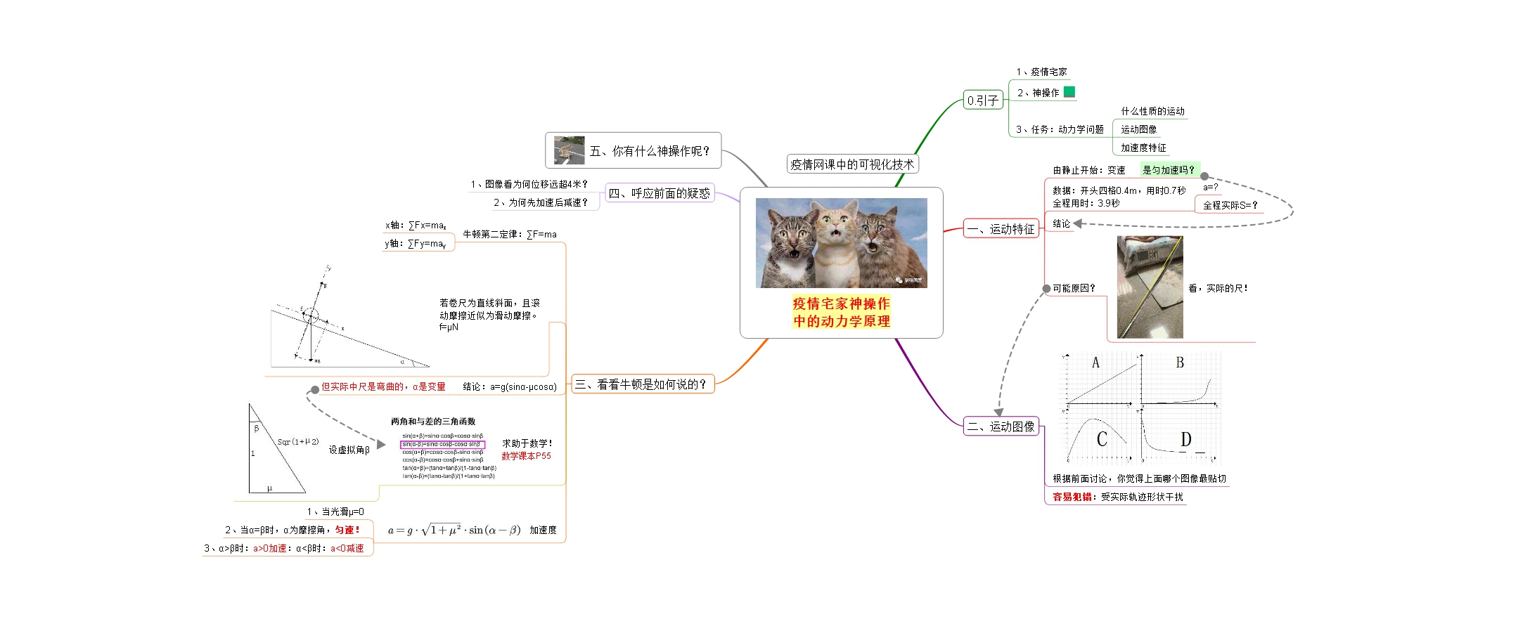 这是2020年寒假结束时的一节高一全年级网络课(全校展示课),一则作为全校开始网课的技术热身,二则作为高一第二学期开学初的一次复习,以思维可视化软件 iMindQ 为平台,以生活趣事谈物理,又以定量推演谈数学,使各个环节能激活学生的学习兴趣。